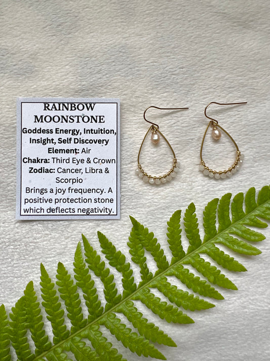 Keleawe Drops in Rainbow Moonstone & Pearl