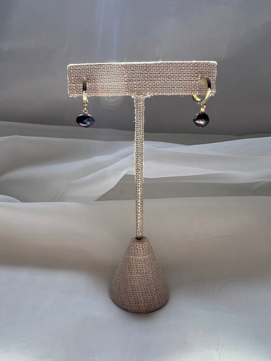 Black Keshi Pearl Huggies