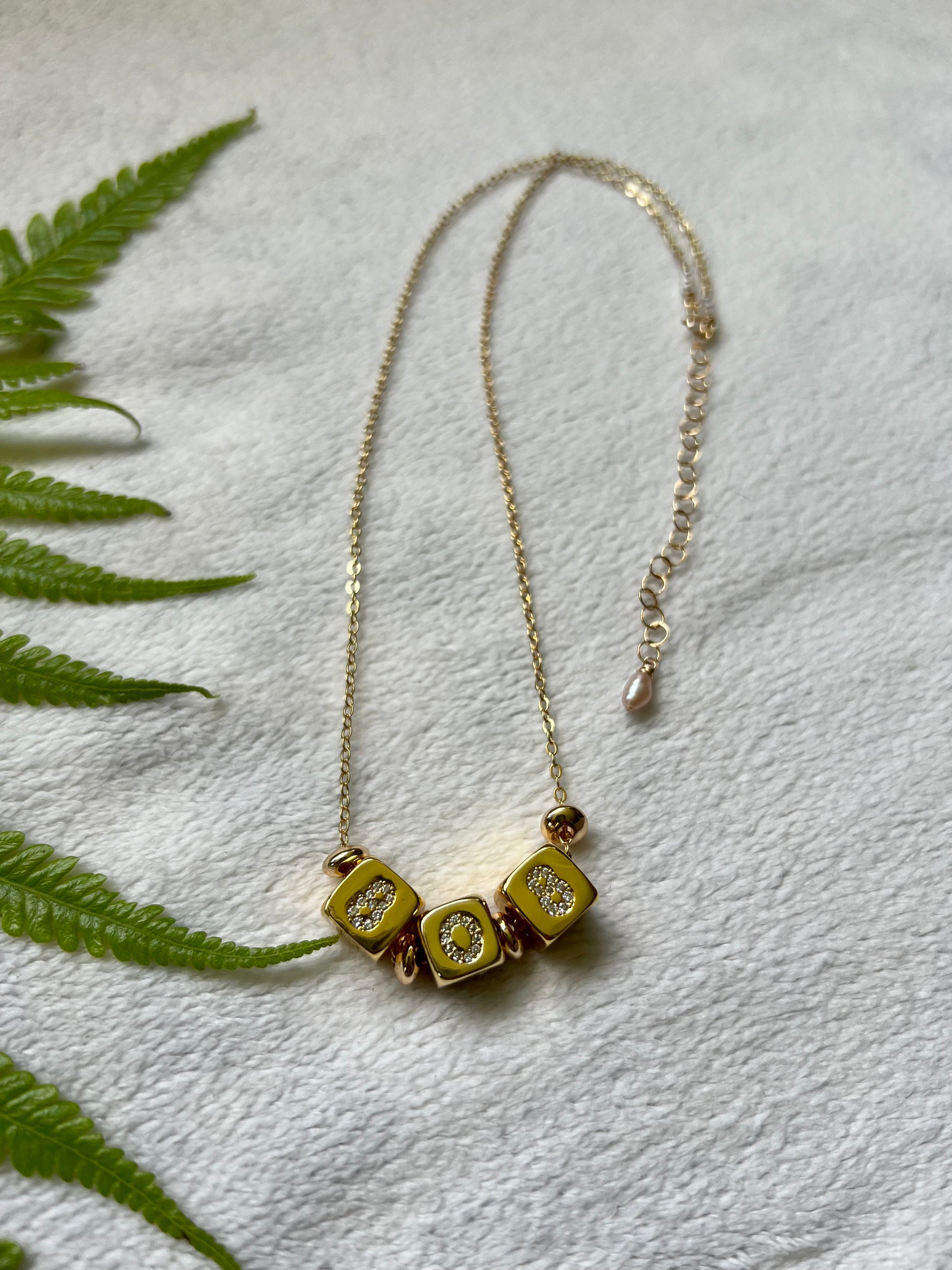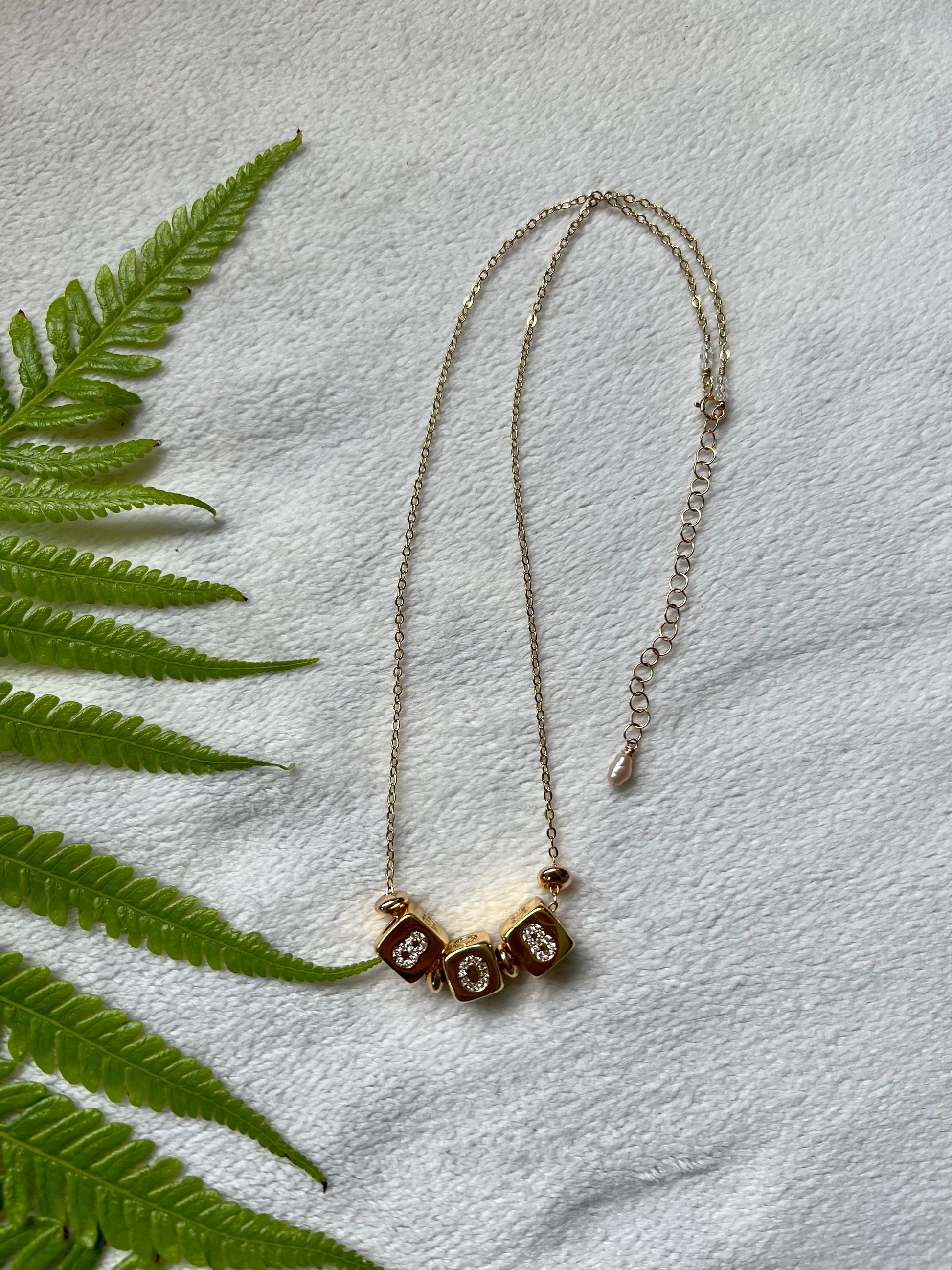 Gold filled micro paved 808 number blocks & gold filled spacer beads on a gold filled cable chain. Gold filled wire and findings. Measures 16”. Each necklace comes with a 2” extension chain.