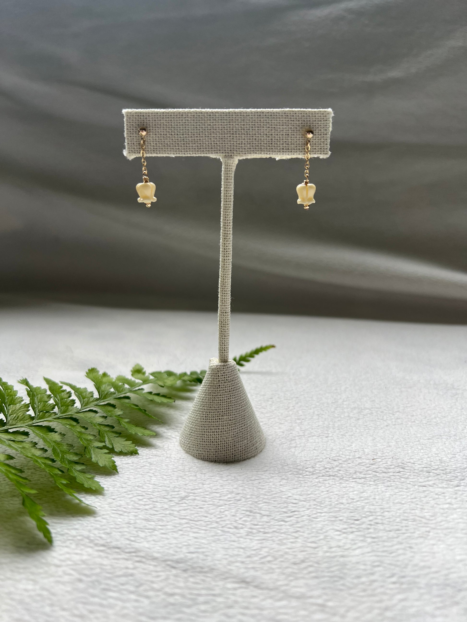 6mm resin Crown flower beads dangling on a gold filled chain. Gold filled wire and findings. Measures about 1” long.