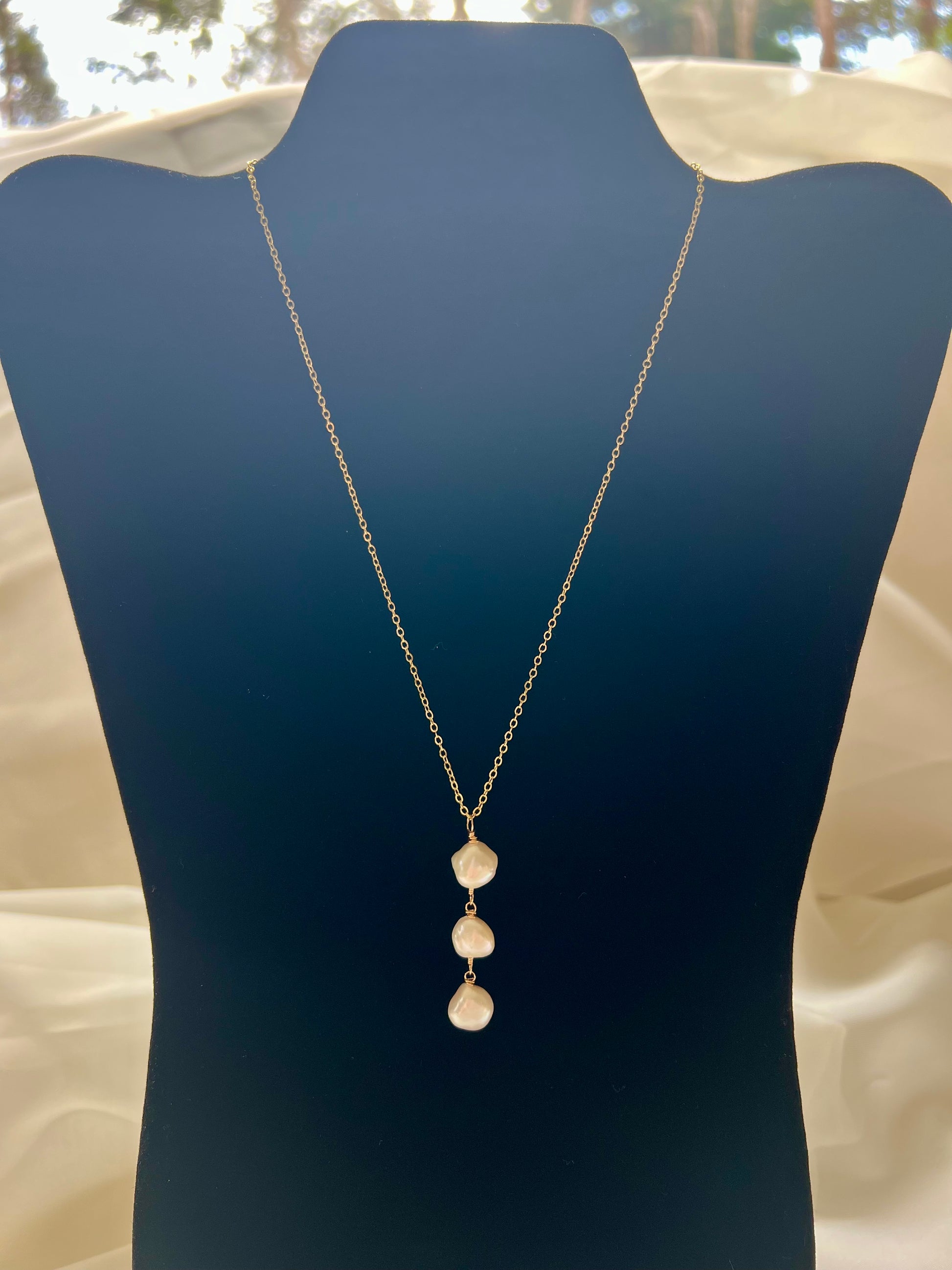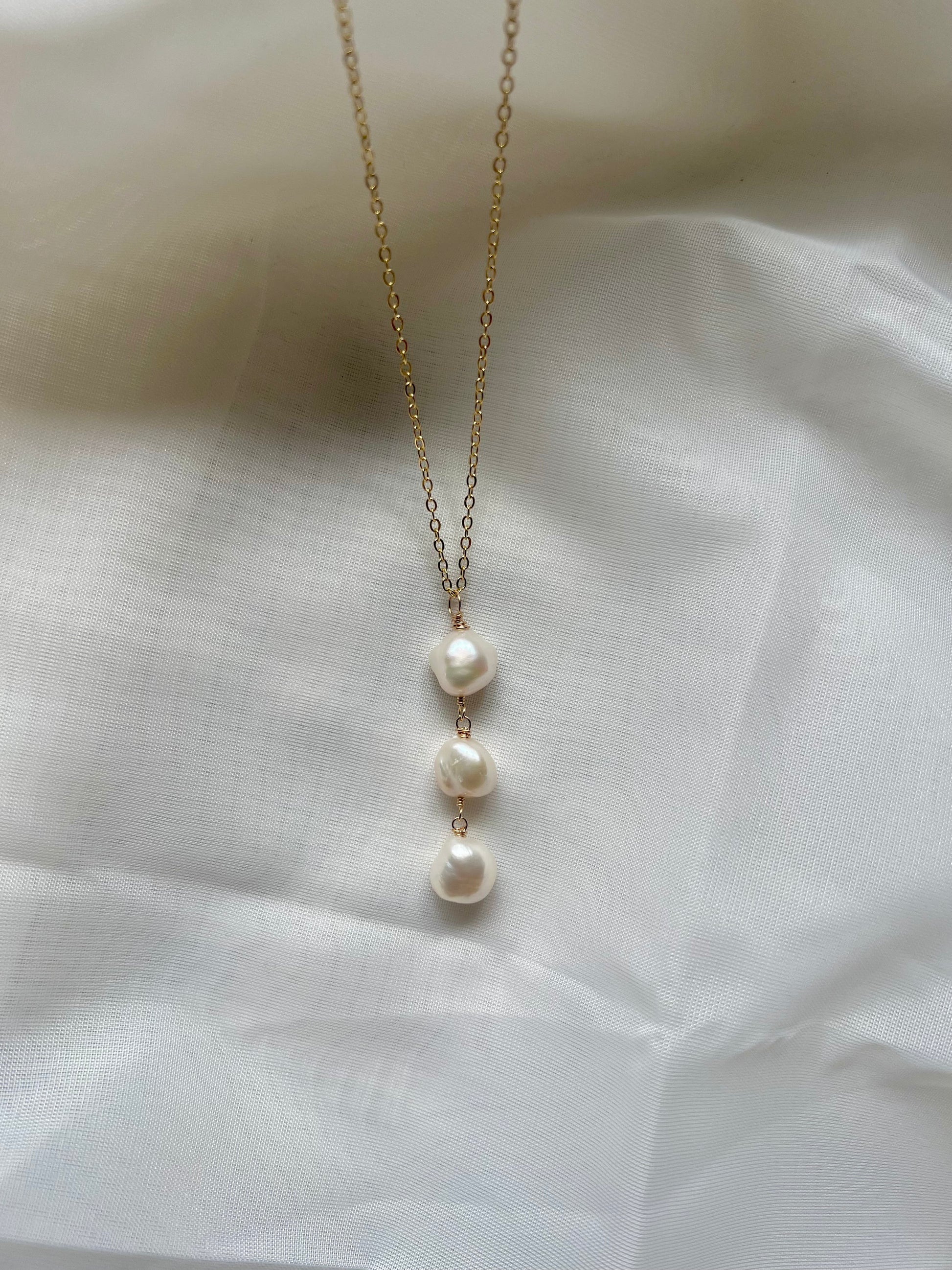 8-9mm white Baroque pearl pendant dangling on a gold filled cable chain. Gold filled wire and findings. Each necklace comes with a 2” extension chain.