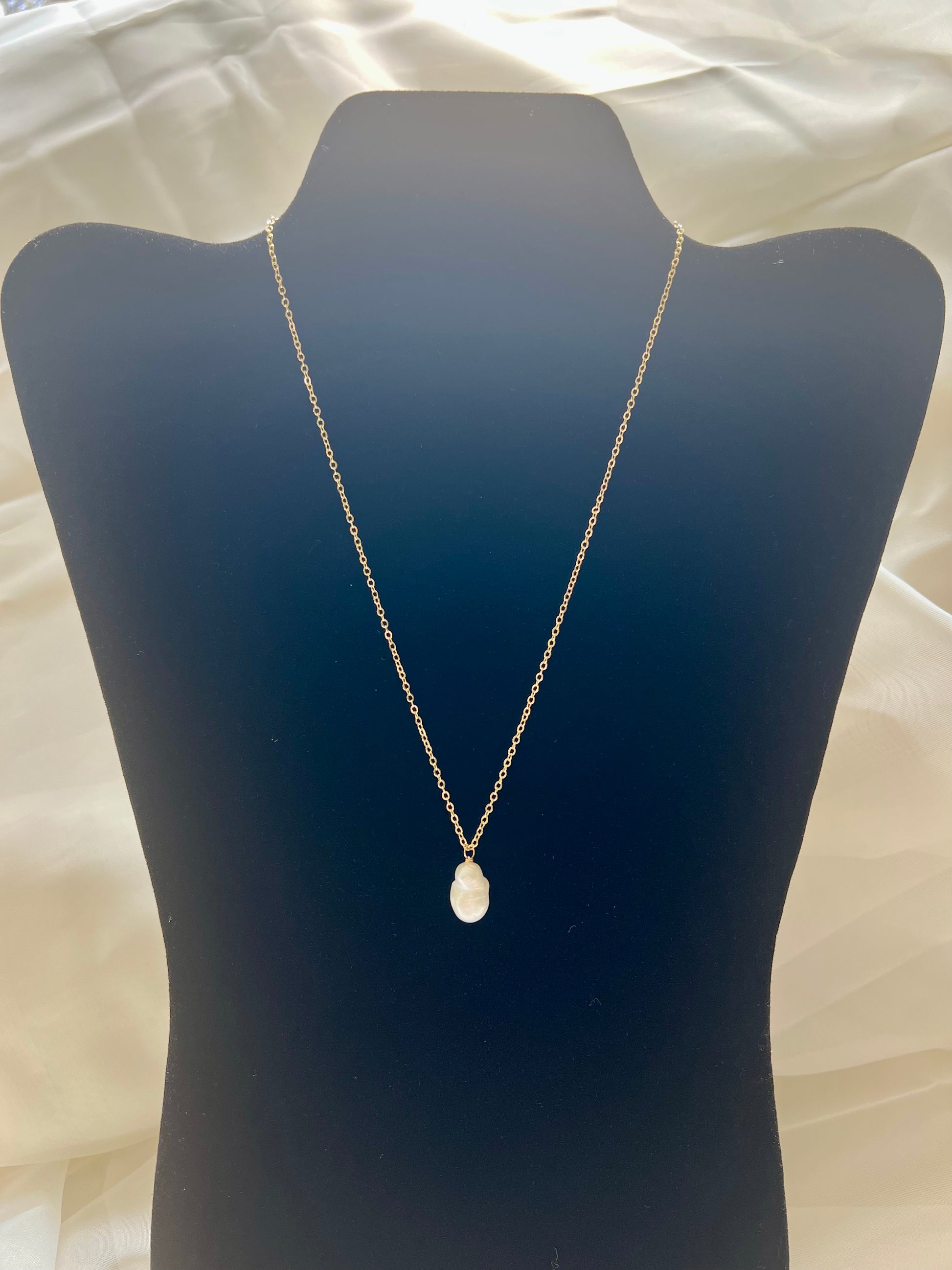 9mm-11mm fresh water baroque pearl pendant on a gold filled cable chain. Gold filled wire and findings. Each necklaces comes with a 2” extension chain.
