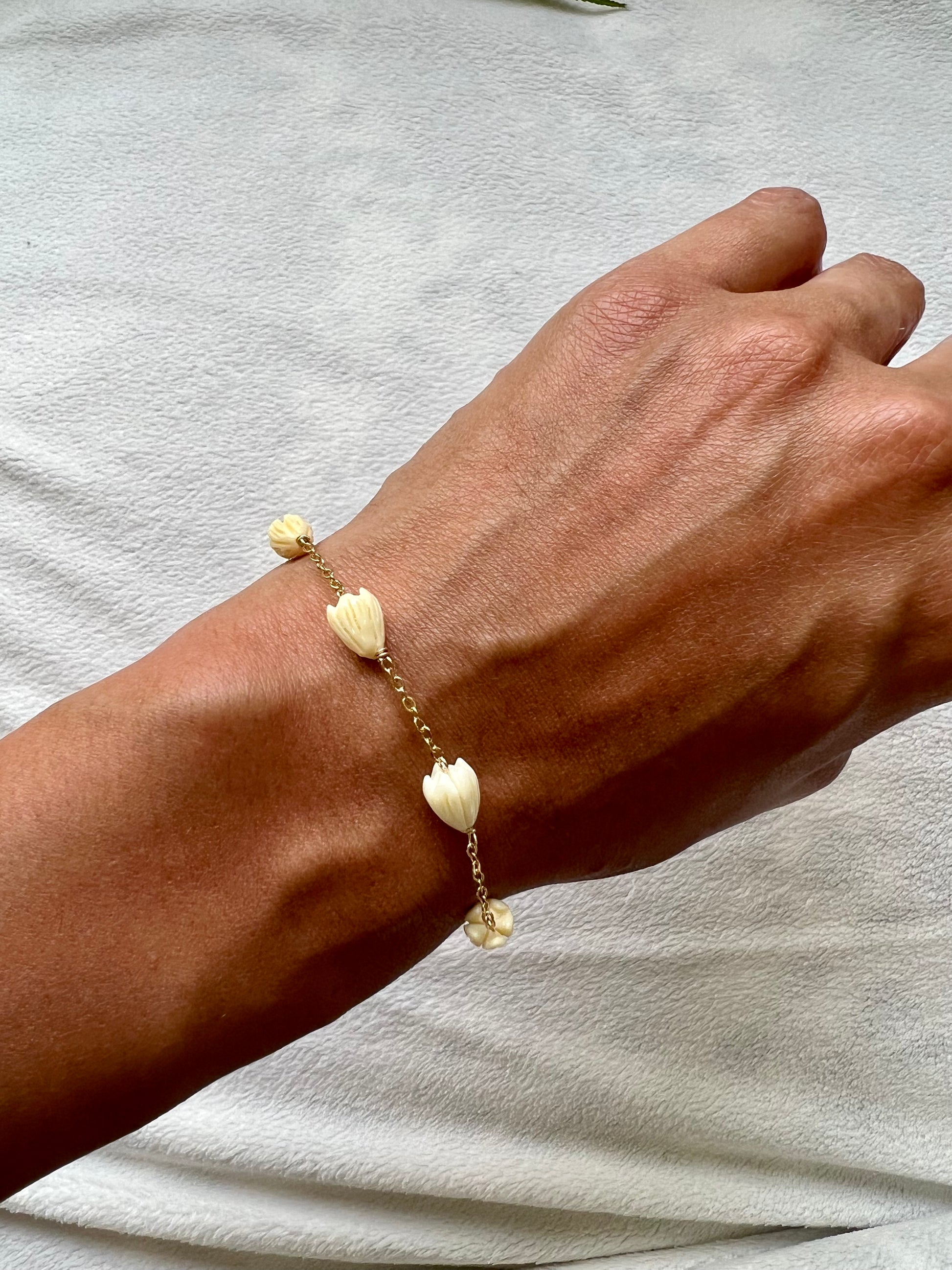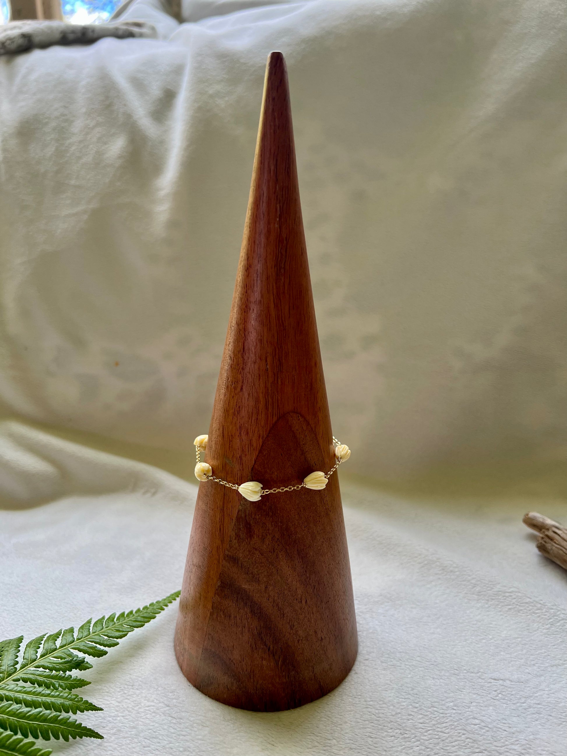 8mm x 7mm resin Pīkake beads on a gold filled cable chain. Gold filled wire and findings. Measures 6.5” and comes with a 1.5” extension chain.